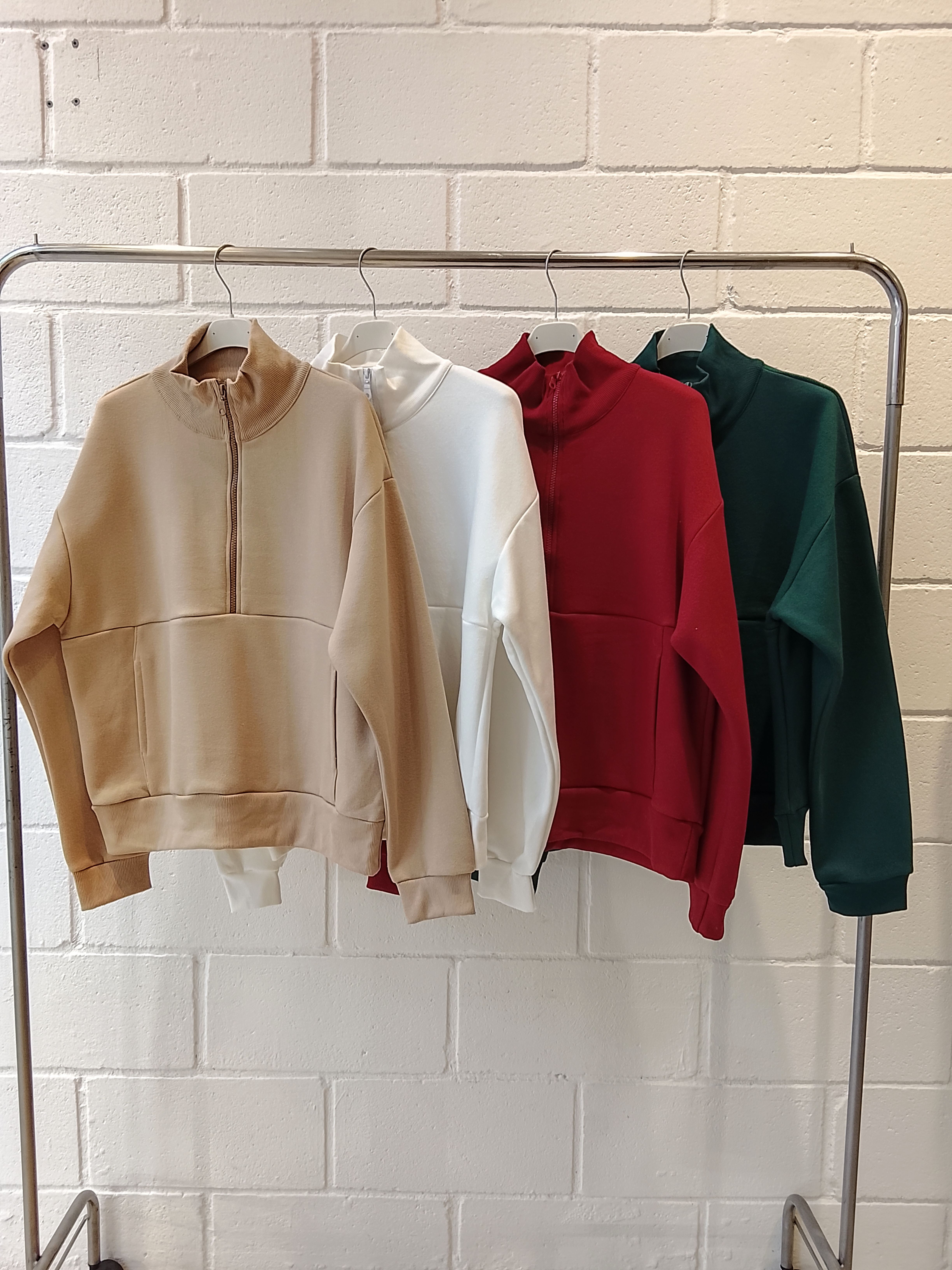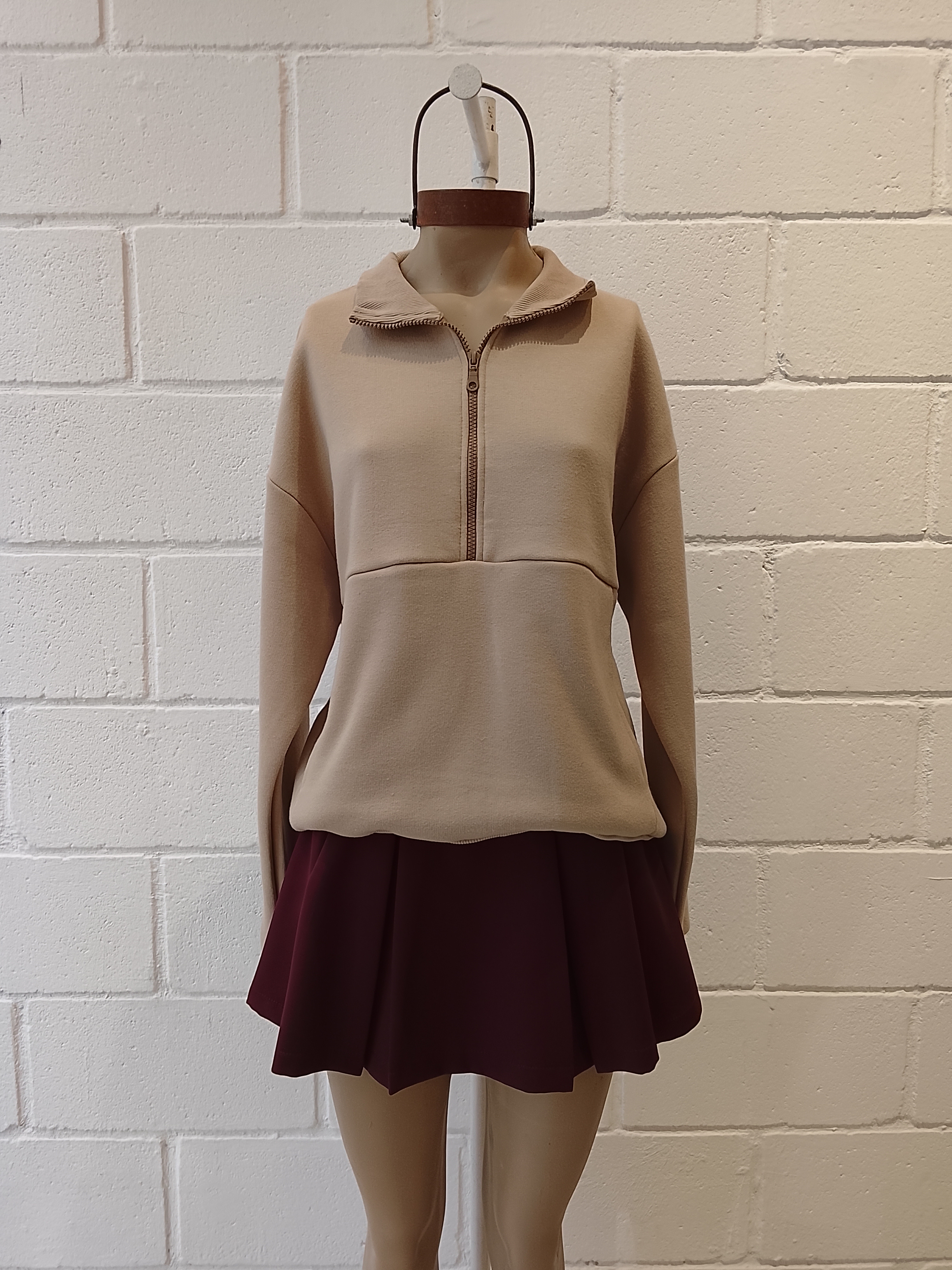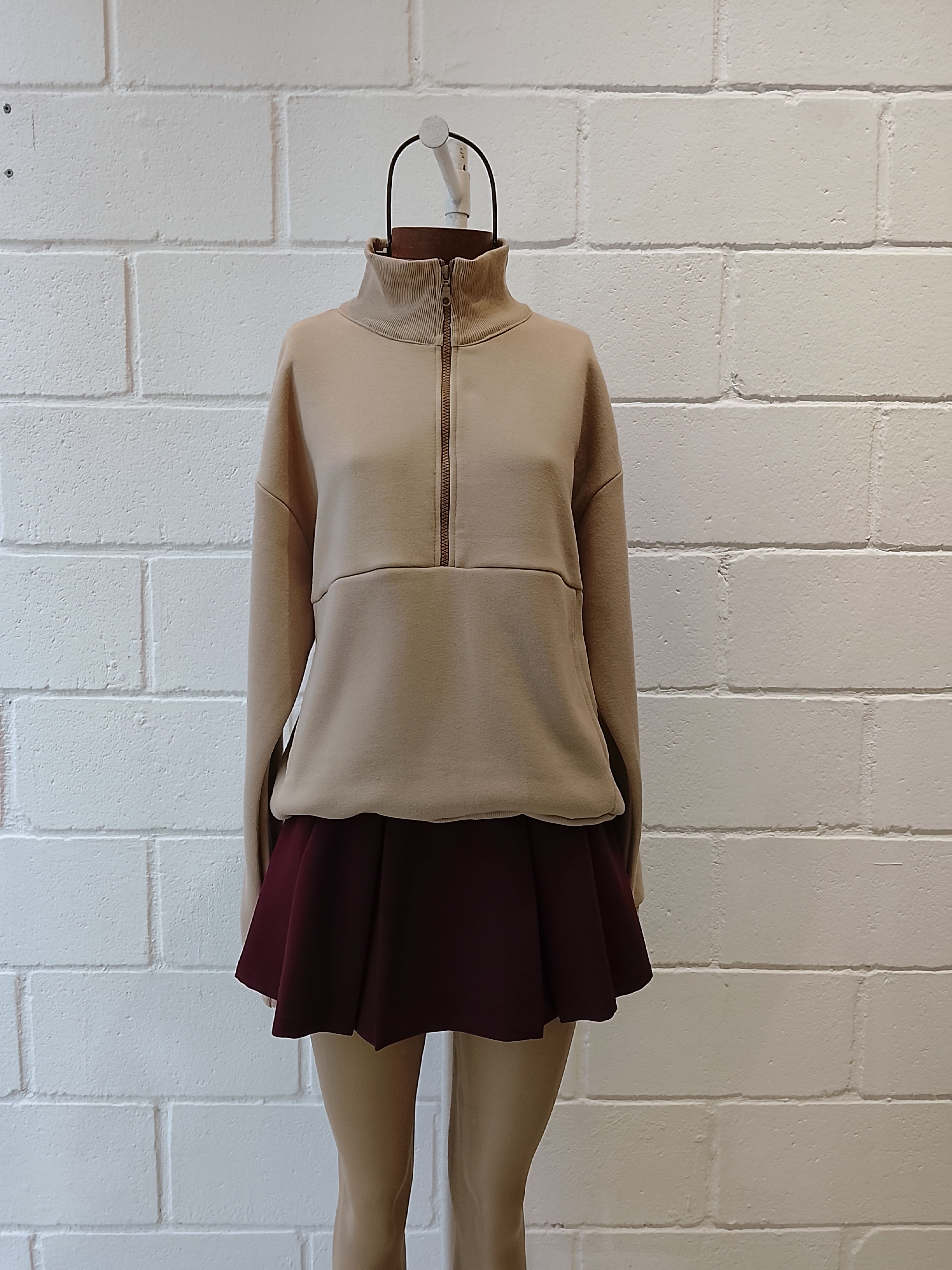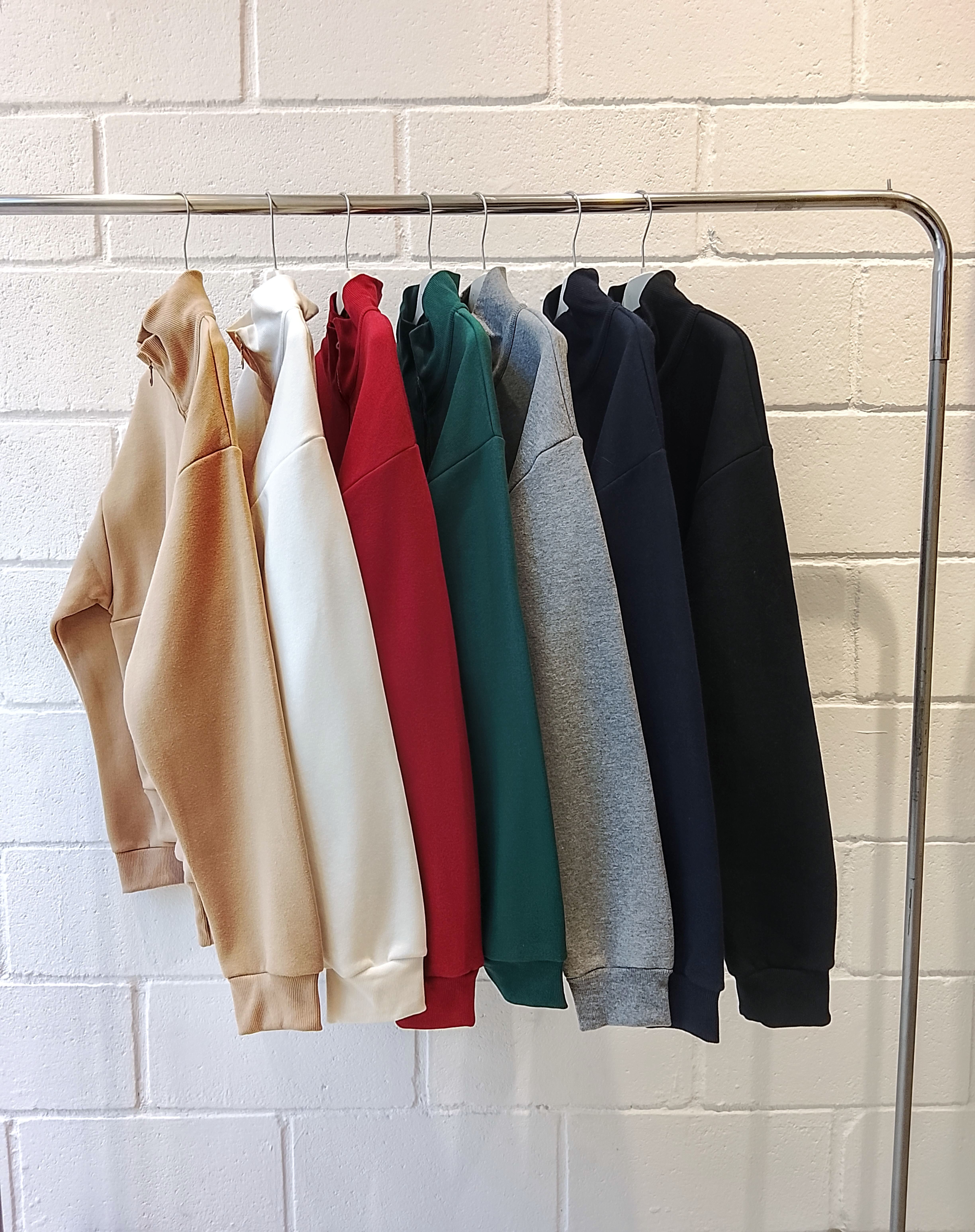 BUZO CON CUELLO ALTO, CIERRE FRONTAL Y BOLSILLO TIPO CANGURO